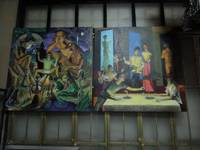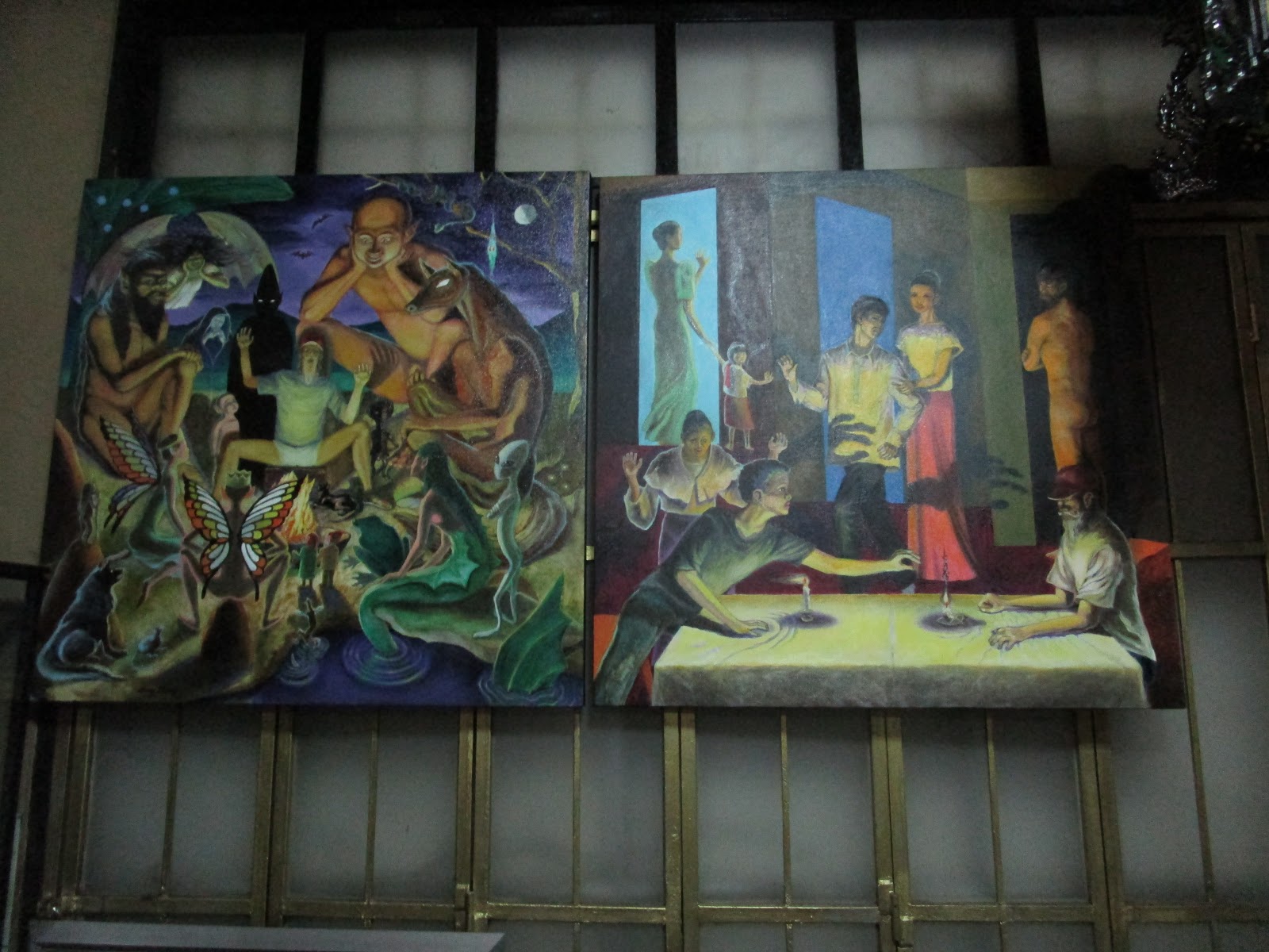 Pending the completion of the third and last piece of my triptych, I temporarily hung the first two pieces on a wall of the studio lounge.